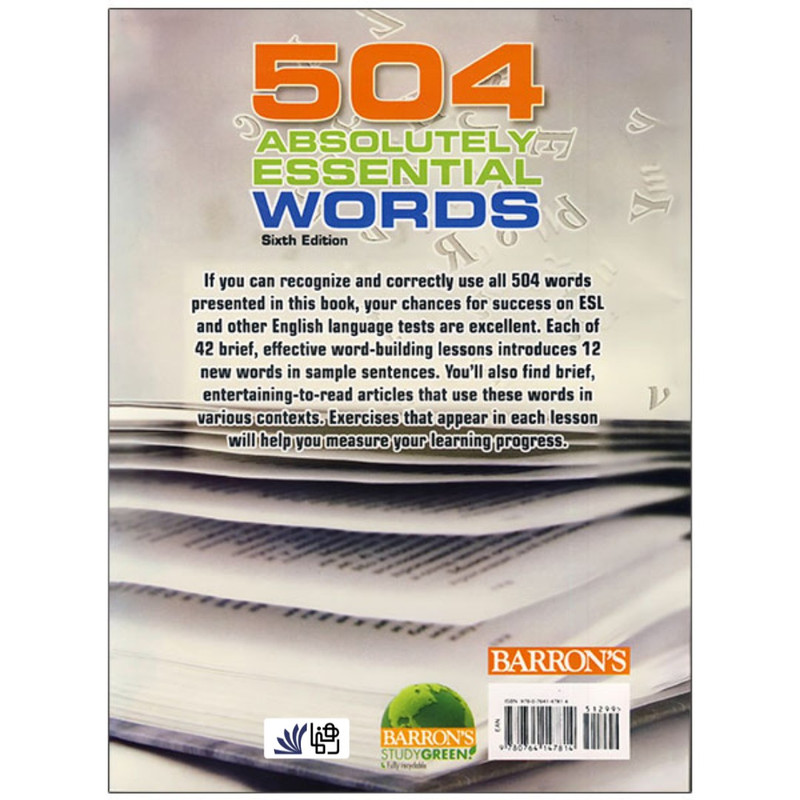 این کتاب شامل 504 وازه ضروری و رایج است که هر زبان آموزی باید بر آنها تسلط کافی داشته باشد. این کتاب روایت ساده و جذابی دارد و واژگان موردنظر را به زبان آموزان به شیوه جذاب اصولی می اموزد. این کتاب همچنین شامل نرم افزار برای تلفظ لغات و محتوای دروس می باشد. همین امر موجب می شود تا به تمامی لغات کتاب به اسانی دسترسی داشته باشید. همچنین، این کتاب یکی از منابع مهم کنکور زبان به شمار می رود