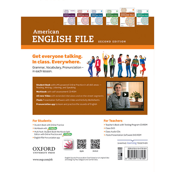 ویرایش دوم مجموعه American English File یکی از پرفروش ترین کتب آموزشی بزرگسالان است. تمرکز اصلی این مجموعه علاوه بر چهار نهارت اصلی بر روی مهارت گفتاری می باشد. یکی از مزایای این کتاب تمرکز و توجه ویژه به آموزش pronunciation است