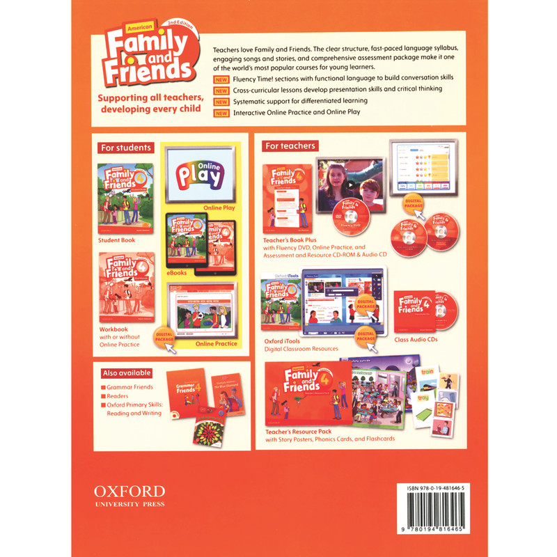 Family and Friends 4 ویرایش دوم، پنجمین کتاب از مجموعه Family And Friends 2nd به عنوان یکی از پرطرفدارترین مجموعه های آموزشی زبان انگلیسی به لهجه امریکایی می باشد که زبان آموزان از آن نتایج مثبت و رضایت بخشی را کسب کرده اند. انتشارات جهانی Oxford در انگلستان توانسته است با همکاری نویسنده Naomi Simmonsدر زمینه چاپ و انتشارات کتاب بسیار موفقیت آمیز عمل کنند، این کتاب تمام آنچه که زبان آموزان در یادگیری اصلی و بنیادین و مضاعف خود نیاز دارند را به صورت کاملا منسجم و کاربردی در قالب تمرین های متنوع به زبان آموزان آموزش می دهد و به آنها این اعتماد به نفس را می دهد تا در تمام موقعیت های زندگی روزمره از کلمات و نکات روزمره به طور صحیح در ارتباط با دیگران استفاده کنند. این کتاب به عنوان یک کتاب جامع و پرکاربرد به صورت کاملا ویژه، در تنوع مطالب و گردآوری تمرین ها در موقعیت های زندگی روزمره که تمام کلمات و نکات گرامری مرتبط به هر موضوعی را پوشش می دهد و زبان آموزان از این طریق می توانند زبان انگلیسی را با انگیزه، اعتماد به نفس و با لذت یاد بگیرند. کتاب حاضر دارای ۱۵ درس، ۵ قسمت که هر قسمت دارای ۳ درس که در انتهای هر ۳ درس دو قسمت به نام های Fluency timeو Reviewاختصاص داده شده است که به طور کلی به ۴ دسته Words, Phonics, Grammar و در نهایت skillsتقسیم بندی شده است نا گفته نماند که در ۳ بخش پایانی کتاب در انتهای درس ۱۵ یک بخش به نام Culture اختصاص داده شده است. این کتاب بدون شک برای زبان آموزان خردسالی که قصد یادگیری و ارتقا سطح دانش کلمات و مهارت های خواندن و صحبت کردن را دارند بسیار ضروری، جذاب و سودمند است، در نتیجه کتاب موردنظر از طریق سرگرمی و مطالب رنگ آمیزی شده و جذاب می تواند به زبان آموزان اعتماد به نفس بدهد تا آنها به صورت موفقیت آمیزی با دیگران ارتباط برقرار کنند.