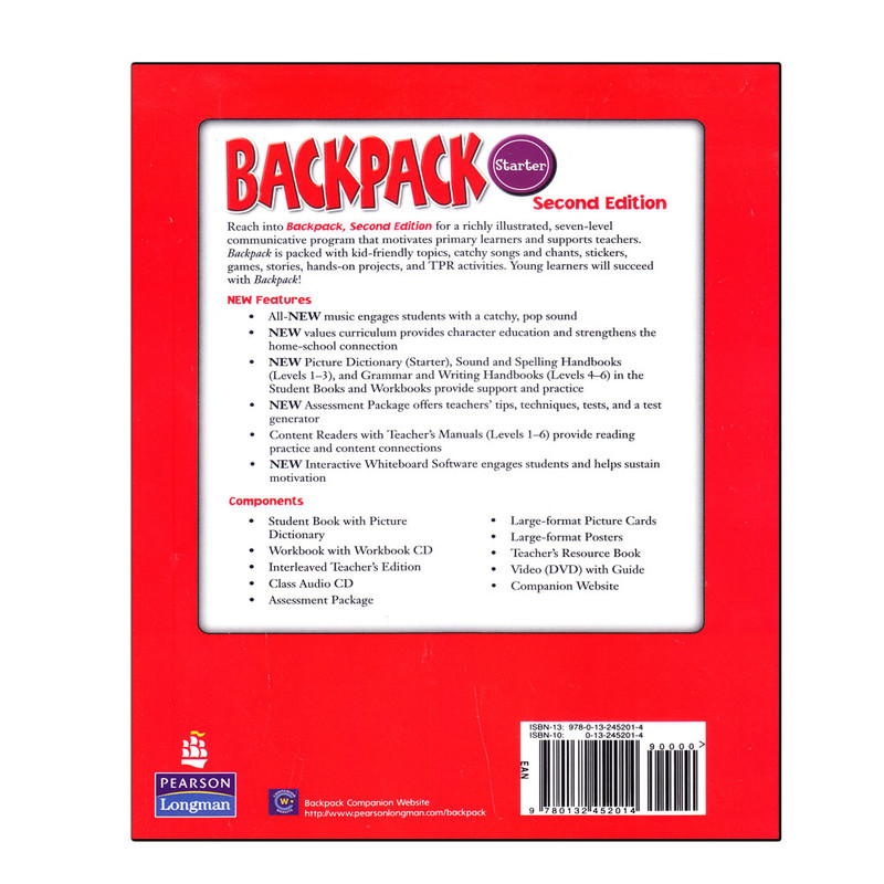 کتاب زبان BackPack 1 Student Book + Work Bookیک کتاب مفید برای یادگیری زبان انگلیسی است. کتاب برای کودکان طراحی شده است و از این رو کتاب طراحی مناسبی دارد که باعث تشویق کودکان به مطالعه بیشتر می‌شود. مخاطب این کتاب کودکان هستند و این کتاب برای این رده سنی منتشر شده است. این کتاب، یکی از کتاب‌های آموزشی متداول است. این کتاب در سطوح مختلف منتشر شده است و مخاطبین زیادی در سراسر جهان دارد. در مورد ا...