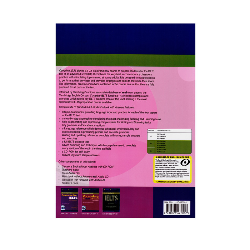 این کتاب که توسط نویسندگانی از دانشگاه کمبریج تدوین و تألیف شده است، یکی از بهروزترین منابع آموزش کلاسی آزمون آیلتس است که تمامی 4 مهارت مورد نیاز این آزمون را مورد بررسی، تمرین و آموزش قرار میدهد. همچنین سرتاسر کتاب پر است از تمریناتی که به زبانآموزان اجازه میدهد میزان تسلط و آمادگی خود را برای آزمون بسنجند.