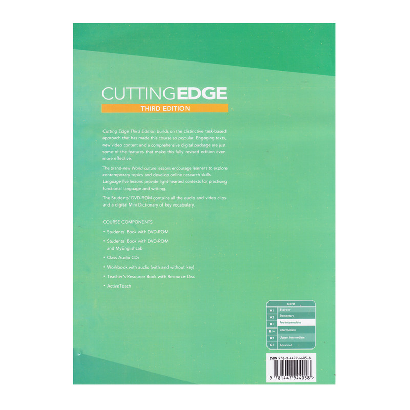 کتاب Cutting Edge 3rd Edition Pre-Intermediate سومین کتاب از مجموعه‌ی 6 جلدی Cutting Edge است. هدف از طراحی این مجموعه، بهبود و ارتقای مهارت‌های اصلی زبان انگلیسی- مثل Grammar، Vocabulary، Pronunciation و…- با استفاده از تمرینات کاربردی بوده و برای بزرگسالانی که قصد یادگیری زبان انگلیسی را دارند، مورد استفاده قرار می‌گیرد.این مجموعه با ارائه‌ی موضوعات متنوع، کاربردی و روزمره باعث تقویت توانایی زبان‌آموزان در مهارت‌های مختلف مثل مهارت‌های گفتاری و شنیداری می‌شود.کتاب Cutting Edge 3rd Edition Pre-Intermediate شامل 14 فصل یا Unit می‌شود و هر یک از فصل‌ها به تفصیل و جداگانه، به تقویت مهارت‌های زبانی می‌پردازد.