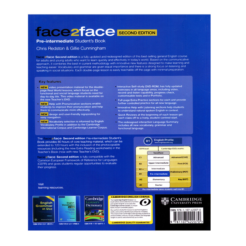 مجموعه فيس تو فيس به آموزش زبان انگليسي رايج در انگلستان پرداخته است و شامل 6 سطح از مبتدي تا پيشرفته است. آماده سازي زبان آموز براي زندگي به زبان انگليسي، توجه خاص به گوش دادن و صحبت کردن، ارزيابي منظم از پيشرفت زبان آموز، آشنايي با نکات گرامري ضروري، آشنايي با تلفظ صحيح و ... از ويژگي هاي مجموعه حاضر است.