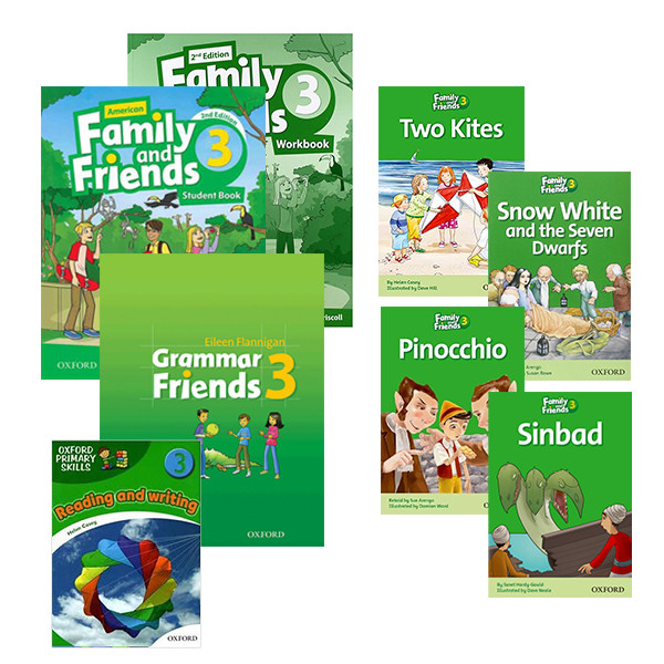 | اقلام همراه | این محصول شامل: «کتاب فمیلی اند فرندز ۳ و کتاب کار فمیلی اند فرندز ۳ و کتاب گرامر فمیلی اند فرندز ۳ و کتاب ریدینگ اند رایتینگ 3 و 4 عدد کتاب داستان فمیلی اند فرندز 3» است. |