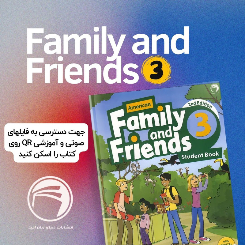 کتاب‌ معروف Family and Friends 3 Second Edition با سطح بندی دقیق، آموزش مهارت‌های اسپیکینگ، رایتینگ و لیسنینگ زبان انگلیسی را به زبان آموزان ارائه می‌دهد. کتاب فمیلی فرندز مخصوص کودکان و در سطح پایه طراحی شده است؛ به طوری که شاید هیچ دوره و کتاب دیگری مانند آن برای آموزش زبان انگلیسی به کودکان در این سن مفید نباشد. درس‌های آموزشی این مجموعه کتاب‌ها، متمرکز بر تقویت مهارت‌های گفتاری و نوشتاری است. در این مجموعه 2 جلدی برای کمتر شدن هزینه کتاب، نسخه DVD حذف شده و به جای آن از کیو آر کد استفاده شده است که با اسکن هر کیو آر کد به صورت رایگان به نسخه های صوتی و تصویری دسترسی خواهید داشت این مجموعه با کیفیت چاپ بسیار خوبی( رنگی مصور ) توسط نشر دنیای زبان امید تولید و توزیع شده است که هر درس شامل آموزش لغات همراه با آهنگ، شعر و داستان با لهجهٔ امریکن است. تدریس گرامر و لغات در قالب جملات، کودک را برای مکالمه‌های ساده در خانه و محیط‌های مختلف و برقراری ارتباط با دوستان آماده می‌کند.