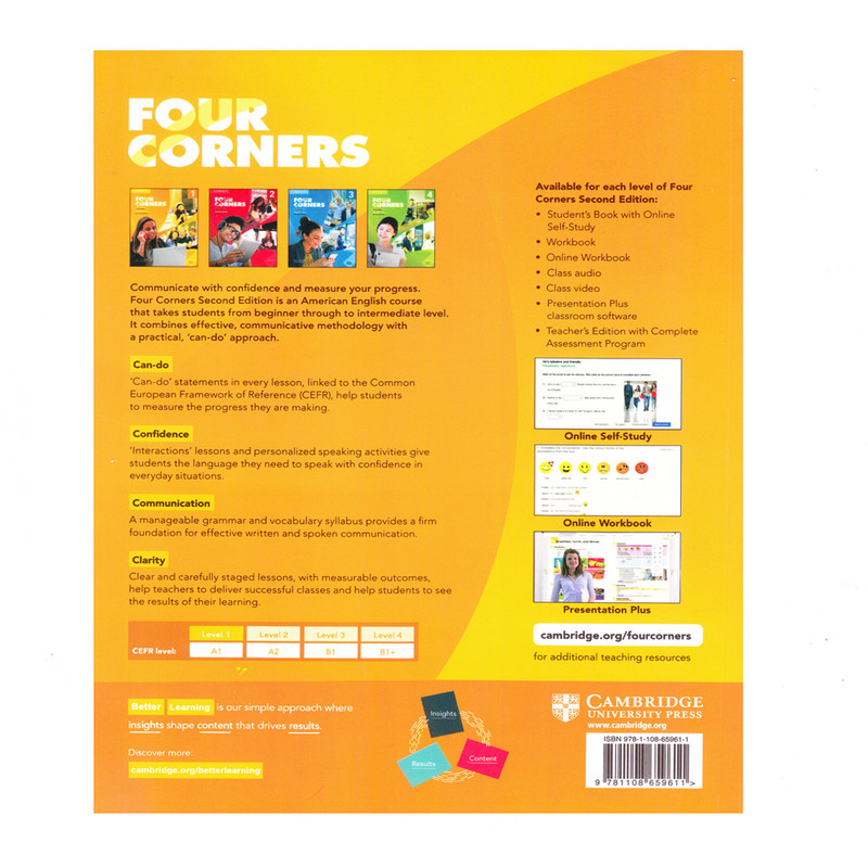 کتاب Four Corners به صورت موضوعی و سازمان یافته برای زبان آموزان و مدرسان در موسسات ارائه می شود. موضوعی که کتاب Four Corners را پوشش می دهد مباحث مورد علاقه بسیاری از زبان آموزان است (موضوعاتی مثل محیط شهری یا روستایی، چهره های بین المللی و ..)