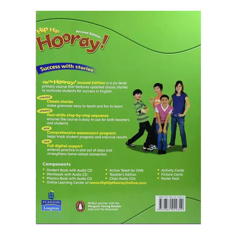 مجموعه آموزشی Hip Hip Hooray در شش سطحی که انتشارات پیرسون برای آموزش زبان به انگلیسی ویژه کودکان به چاپ رسانده است. این مجموعه که در بسیاری از آموزشگاههای زبان خارجه تدریس میشود، در پی آن است که زبان انگلیسی را از طریق داستانهای قدیمی آموزش دهد، که با این روش آموزش گرامر زبان انگلیسی بسیار سادهتر میشود. روند شکلگیری و گردآوری قدم به قدم هر چهار مهارت به گونهای طراحی شده است که هم برای زبانآموزان و هم برای مدرسان، بسیار ساده تدریس و یادگرفته میشود.