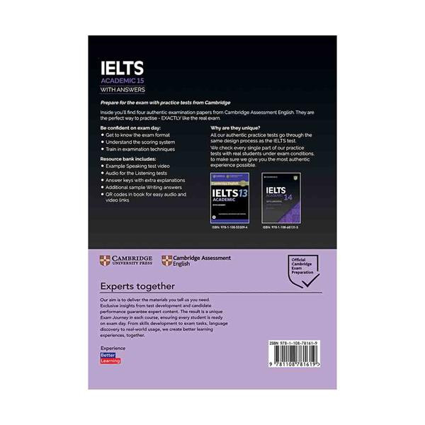 کتاب IELTS Cambridge 15 Academic را میتوان به عنوان غنیترین و به روزترین کتابی دانست که میتواند سطح مهارت زبانآموزان را تا حد بسیار زیادی ارتقاء بخشد. علاوهبراین کتاب، انتشارات کمبریج، کتاب IELTS Cambridge 15 General را هم منتشر کردهاست. این کتاب مخصوص دانشجویانی است که قصد شرکت در آزمون آیلتس آکادمیک را دارند. آزمون آیلتس آکادمیک و جنرال از لحاظ فرمت و شکل کلی آزمون، کاملاً مشابه یکدیگر هستند. به همین دلیل هردو کتاب آیلتس کمبریج جنرال و آیلتس کمبریج آکادمیک، از لحاظ فرمت کلی شبیه هم هستند. هردوی این کتابها، چهار مهارت Reading، Speaking، Writing و Listening دانشجویان را به طور کامل و در حد مورد نیاز آزمون ارتقاء میدهند و تمام تستها و بخشهای مختلف آن به طور کامل مشابه آزمون اصلی آیلتس است. تمام موضوعات و سؤالات مطرح شده در آزمون آیلتس جنرال و آکادمیک، ورژن یکسانی دارند. اما تفاوت اصلی دو آزمون، در محتوای مطالب و نوع تسکهای مطرح شده در بخش Reading و Writing است. در آزمون آیلتس آکادمیک محتوای Reading به صورت مستقیم از منابعی چون کتابهای تخصصی، ژورنالها و روزنامههای معتبر انتخاب میشود و درک مطلب متقضیان را در حوزههای حرفهایتر آزمایش میکند. درحالیکه محتوای Reading در آزمون آیلتس جنرال از حوزههایی مانند تبلیغات، مجلات، کتابهای راهنما و دستورالعملها و در حالت کلی از محتوایی که افراد در زندگی روزمره با آنها روبرو میشوند، انتخاب میشود. این تفاوتها در بخش Writing هم نمود پیدا میکند و با توجه به نوع آزمون، محتوا و سطح آن متفاوت است. زبانآموزان بهراحتی میتوانند با استفاده از توضیحاتی که در کتاب ارائه شده، با نحوه امتیازدهی آزمون آیلتس آشنا شوند و بدین طریق سطح خود رابه طور کامل بسنجند. لازم به ذکر است بسته به هدف شرکتکننده در آزمون آیلتس، باید ابتدا نوع آزمون انتخاب شود و زبانآموز تعیین کند که نیازمند مدرک آیلتس جنرال است یا آکادمیک وسپس برای خرید کتاب آیلتس کمبریج اقدام نماید.