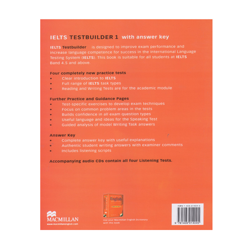 مجموعه کتاب های IELTS Test Builder مجموعه ای دو سطحی است که توسط انتشارات مک میلان برای افرادی که می خواهند آمادگی خود برای آزمون آیلتس را بالا ببرند منتشر گردیده اند. این مجموعه مناسب زبان آموزانی است که می خواهند نمره 6 را در آزمون آیلتس آکادمیک کسب کنند.