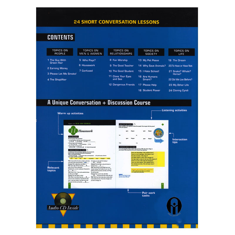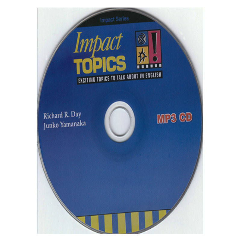 این کتاب برای تقویت مهارت گفتاری زبان آموزان طراحی شده است. این مجموعه در قالب 24 بحث و مکالمه به زبان آموز در جهت ارائه نظرات و ایده های خود کمک خواهد نمود.این مجموعه به زبان آموز کمک می کند تا ایده های خود را بیان نموده و ایده و نظرات افراد دیگر را بهتر درک نماید. کتاب Impact Topicsمی تواند به صورت خودآموز و یا در کلاس درس مورد تدریس قرار گیرد. کتاب در 5 بخش انسان ها، روابط، محیط کاری، خانواده و جامعه تنظیم گردیده است که هر یک از این بخش ها شامل 5 موضوع اساسی می باشد که افراد در زندگی با آنها مواجه هستند. در کنار کتاب این مجموعه فایل صوتی درس به درس نیز ارائه گردیده که شامل تمامی مکالمات کتاب خواهد بود.