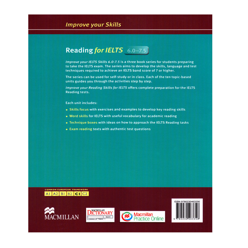 کتاب Improve Your IELTS Reading Skills، یکی از سری های بسیار خوشنام و معتبر از انتشارات مک میلان برای آموزش و تقویت مهارت ریدینگ زبان انگلیسی برای آزمون آیلتس می باشد. این کتاب حاوی ده درس می باشد که دارای موضوعات کاربردی و مفیدی است. موضوع درس ها Processes and Cycles, Education, Youth, Culture, Arts and Sciences, Nature, Health, The Individual and Society می باشد.