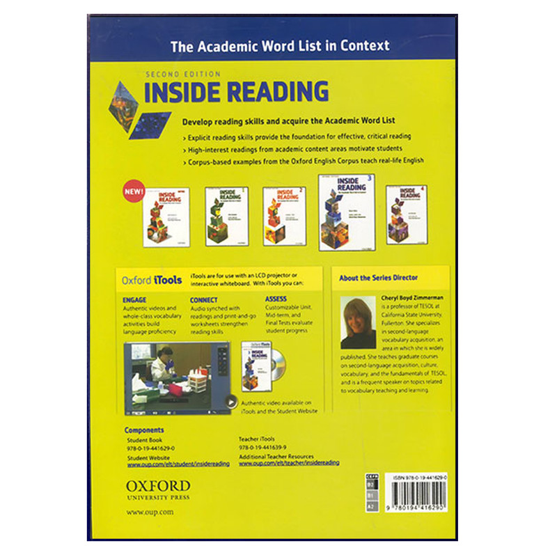 این مجموعه آموزشی مطابق با سیستم لهجه آمریکایی سامان یافته و توسط انتشارات اکسفورد به چاپ رسیده است. مجموعه آموزشی Inside Reading ویرایش دوم به زبانآموزان راه و رسم حرفهای شدن و به کار بستن آموزههای خود در جهان واقعی را میآموزد. این مجموعه در پنج جلد شامل سطوح مبتدی تا پیشرفته و همچنین متون متنوع و گسترده از مباحث علمی تا آکادمیک و موضوعات داغ و بهروز معاصر است. هر کتاب شامل ده درس میباشد که هر کدام به نوبه خود به یک موضوع خاص و منحصر بفرد پرداخته است. کتاب حاضر، انتخاب زبانآموزان براي تقویت و ارتقای مهارت خواندن و درک مطلب از سطوح مبتدی تا پیشرفته است. ويژگيهاي بارز اين مجموعه از جمله آموزش مهارت خواندن، درک مطلب و نقش واژگان در تمام مراحل یادگیری، تفکر انتقادی، تجزيه و تحليل متون آکادمیک و درک درست مباحث دستوری، همه و همه برای بهرهوری هر چه بیشتر و دستیابی به نتیجهای شگرف در قالب یک مجموعه آموزشی بسیار ارزشمند و معتبر در اختیار شما قرار خواهد گرفت.