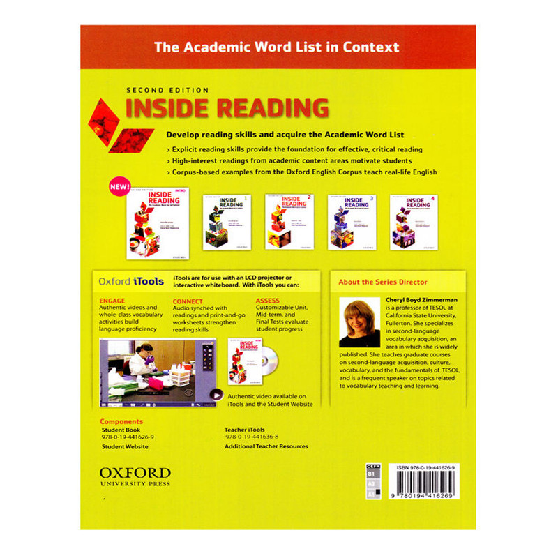 یکی از بهترین روش ها برای بالا بردن مهارت انگلیسی خود، خواندن متون متنوع و متعدد به زبان انگلیسی است. همچنین با خواندن متن های بیشتر مهارت نوشتاری شما نیز افزایش چشمگیری خواهد داشت. از فوائد این مجموعه این است که خواندن متون اداری، آکادمیک، علمی و تخصصی را فرا بگیرید و بتوانید در حین خواندن بدون کاهش سرعت، درک مطلب درست و کاملی از متن خوانده شده به دست بیاورید. همچنین پاسخ تمامی تمارین کتاب ها در این مجموعه قرار داده شده است و نیز به برای هر سطح نرم افزار آزمون و تست هر سطح به صورت interactive قرار گرفته است. برخی از ویژگی های این کتاب کتاب inside Reading دارای تمرین های بسیار زیادی می باشد که تمامی آنها در راستای پیشرفت روزافزون شما طراحی شده اند و شما با انجام دادن آنها می توانید خیلی سریع پیشرفت کنید، این کتاب بر اساس لهجه بریتیش طراحی شده است و یکی از محصولات انتشارات آکسفورد می باشد که در زمینه آموزش زبان انگلیسی معتبرترین انتشارات است، در کتاب inside Reading می توانید متونی از تمامی موضوعات شامل علمی و داستانی را مشاهده کنید. این کتاب دارای ۱۰ درس می باشد که در انتهای هر درس تمرینات متعددی گنجانده شده است که شما بعد از مطالعه درسنامه باید اقدام به انجام دادن آن ها کنید، در صورتی که معنی کلمه ای را بلد نبودید می توانید به واژه نامه ای که در انتهای کتاب آمده است مراجعه کنید، در این واژه نامه می توانید تعداد بسیاری زیادی از لغاتی که در درسنامه های این کتاب آمده است را مشاهده کنید، با این که تمرکز اصلی این کتاب بر روی توانایی خواندن متون مختلف می باشد ولی شما با مطالعه این کتاب اطلاعات بسیار زیادی نیز درباره نحوه صحبت کردن به زبان انگلیسی و همینطور نحوه نوشتن متون مختلف به زبان انگلیسی بدست می آورید.