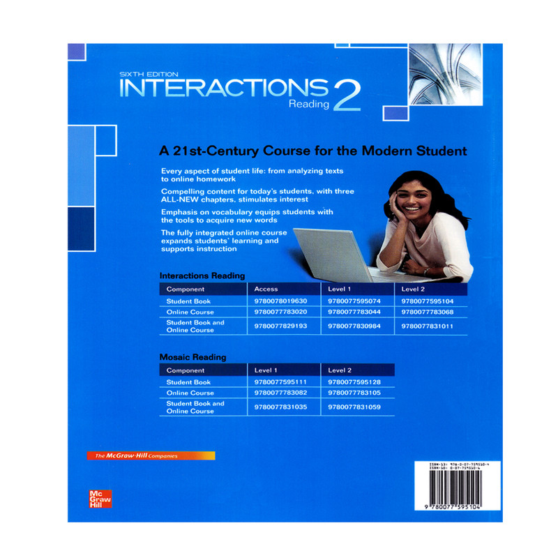 محبوبترين مجموعه کتابهاي جامعي که براي بهبود مهارتهاي آکادميک زبانآموزان دنيا وجود دارد، هم اکنون در دسترس شما قرار گرفته شده است. کتابهاي Interactions زبان آموزان را براي ورود به کلاسهاي دانشگاه با در نظر گرفتن تمام ابعاد زندگي دانش آموز از نت برداري از صحبتهاي استاد گرفته تا تجزيه تحليل کتابهاي درسي براي انجام تکاليف آنلاين، آماده ميسازد.