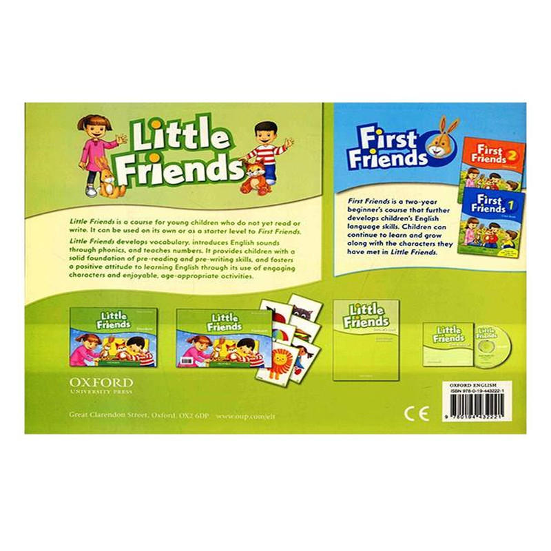 کودکان بيشتر مايلند از رنگ آميزي و شعر خواني براي يادگيري زبان شروع کنند تا جذابيت زبان آموزي را از همان ابتدا حس کنند،آنها ميتوانند از حروف الفبا،اعداد و بسياري از موضوعات ديگر براي يادگيري زبان شروع کنند. و نبايد از آنها انتظار داشت از کلمات و جملات پيشرفته شروع کنند. کتاب Little Friends را ميتوان به شرح زير توصيف کرد اين کتاب مقدمه ي شروع آموزش زبان سري کتابهاي American/British First and Family and Friends است.که کودکان را براي رساندن به سطح بالا و پيشرفته در انگليسي آماده ميکند و اين قابليت را به کودکان زبان آموز ميدهد تا خود را براي جمله سازي و استفاده ي صحيح از کلمات و عبارات مناسب در گفتگوهاي روزمره آماده کنند که در راستاي آنها,کودکان ميتوانند محيط اجتماعي اطرافشان را بهتر و بيشتر بشناسند. از ويژگي هاي بارز اين کتاب ميتوان به موارد زير اشاره کرد کتاب Little Friends دايره ي واژگان مختلف را به کودکان آموزش ميدهد و تمام صداها و آواها را از طريق فونيکس معرفي ميکند و آموزش ميدهد،و همچنين نيز اعداد نيز به ترتيب آموزش داده ميشوند،و کودکان را از پايه با مهارت هاي نوشتن و خواندن آشنا ميکند.از ديگر ويژگي هاي اين کتاب ميتوان گفت که کودکان ميتوانند احساس مثبتي در جهت لذت بردن از انجام تکاليف و شناسايي شخصيت هاي مختلف در درس هاي اين کتاب داشته باشند. اين کتاب شامل 10 درس ميباشد که موارد زير را پوشش ميدهد xواژگان،حروف الفبا و کلمات بر طبق موضوعات مختلف،اعداد و ساختار جملات مختلف آموزش داده ميشوند. xتمام صفحات کتاب،رنگي و روغني هستند. xتنوع تمرينات به صورت وصل کردني،رنگ آميزي،حروف چيني و اعدادچيني هستند. xدر صفحات پاياني کتاب،تعدادي از برچسب هايي براي فهم بهتر مطالب و تمرينات ارائه شده است،و کودکان ميتوانند با لذت،از آنها استفاده کنند و آنها را براي حل تمرينات به کار گيرند. نکته ي مهم و خواندني سري کتابهاي Little Friends,American and British First and Family and Friends داراي داستانهاي کوتاهي هستند با موضوعات مختلف که کودکان ميتوانند دايره ي لغات،گرامر و درک مطلبشان را ارتقا دهند.