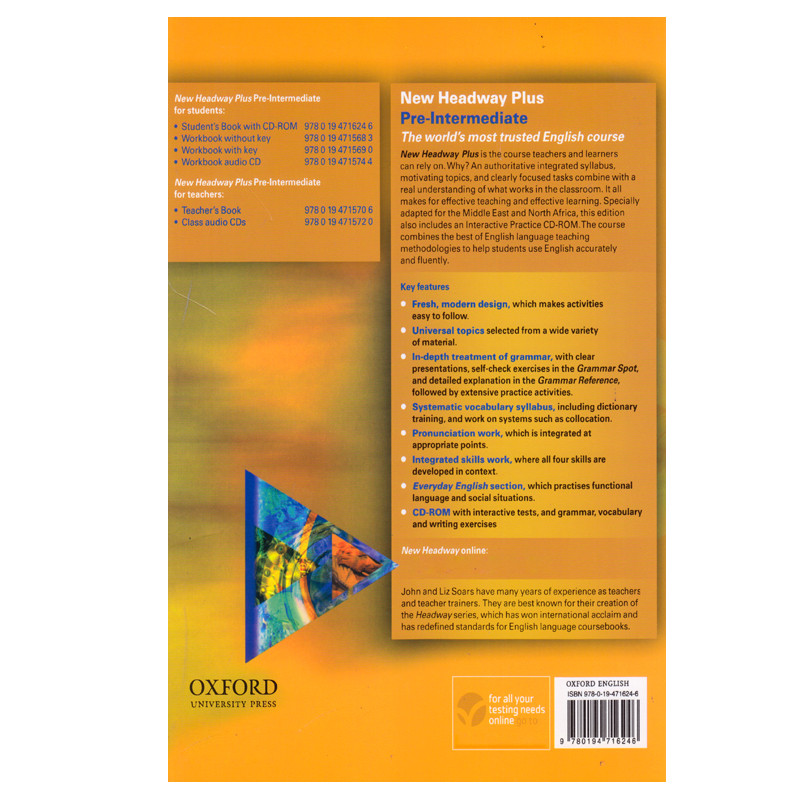 کتاب New Headway Plus (نسخه بومی سازی شده برای کشورهای خلیج فارس) یکی از پرفروش ترین و معروفترین کتابهای آموزش زبان انگلیسی بزرگسالان در جهان از سطح مبتدی تا پیشرفته و با لجهه انگلیسی می باشد. این کتاب سعی دارد با یک برنامه درسی کاملا هدفمند و با تمرکز در گرامر، مهارتهای یکپارچه و لغت های مرتبط در کتاب درس و تمرین های اضافی در کتاب کار در هر سطح شما را در یادگیری هر چه سریعتر یاری دهد.