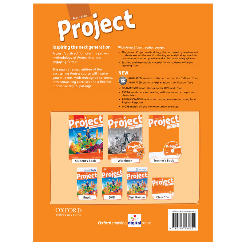 مجموعه Project (ويرايش چهارم) با تصاوير جديد، تمرينها و بسته ديجيتالي جديد در 5 دوره براي کودکان 10 تا 15 سال ارائه ميشود. این مجموعه شامل 5 کتاب با سطوح مختلف بوده و هر کتاب شامل 6 درس میباشد. این کتاب مشوقی عالی برای یادگیری زبان انگلیسی از طریق ارائه محتواهای بهروز و جدید میباشد. این کتاب با فراهم آوردن متون جذاب، موضوعات بحث برانگیز و فعالیتهای منحصربفرد در تمام سطوح دانشآموزان را به یادگیری زبان علاقهمند میسازد.
