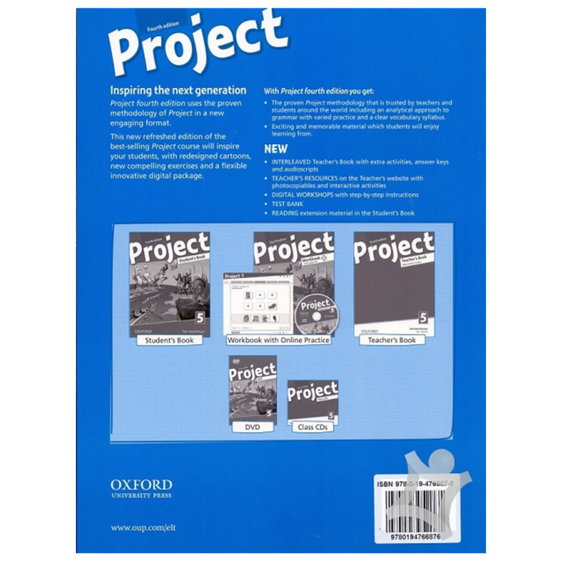 مجموعه Project (ويرايش چهارم) با تصاوير جديد، تمرينها و بسته ديجيتالي جديد در 5 دوره براي کودکان 10 تا 15 سال ارائه ميشود. این مجموعه شامل 5 کتاب با سطوح مختلف بوده و هر کتاب شامل 6 درس میباشد. این کتاب مشوقی عالی برای یادگیری زبان انگلیسی از طریق ارائه محتواهای بهروز و جدید میباشد. این کتاب با فراهم آوردن متون جذاب، موضوعات بحث برانگیز و فعالیتهای منحصربفرد در تمام سطوح دانشآموزان را به یادگیری زبان علاقهمند میسازد.
