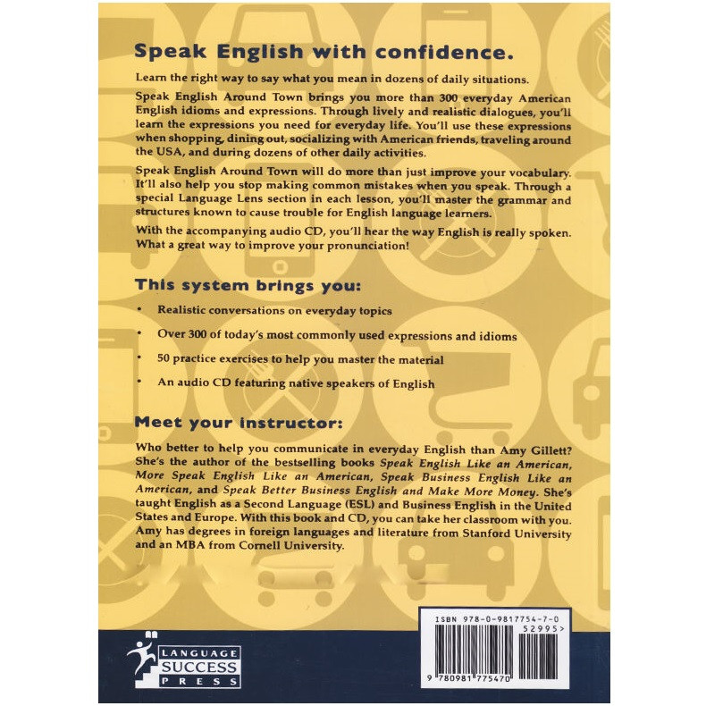 کتاب Speak English Around Town به شما کمک می کند تا انگلیسی را با اعتماد به نفس بالا صحبت کنید. این کتاب شیوه صحیح صحبت کردن در چندین موقعیت روزمره را به شما آموزش می دهد.