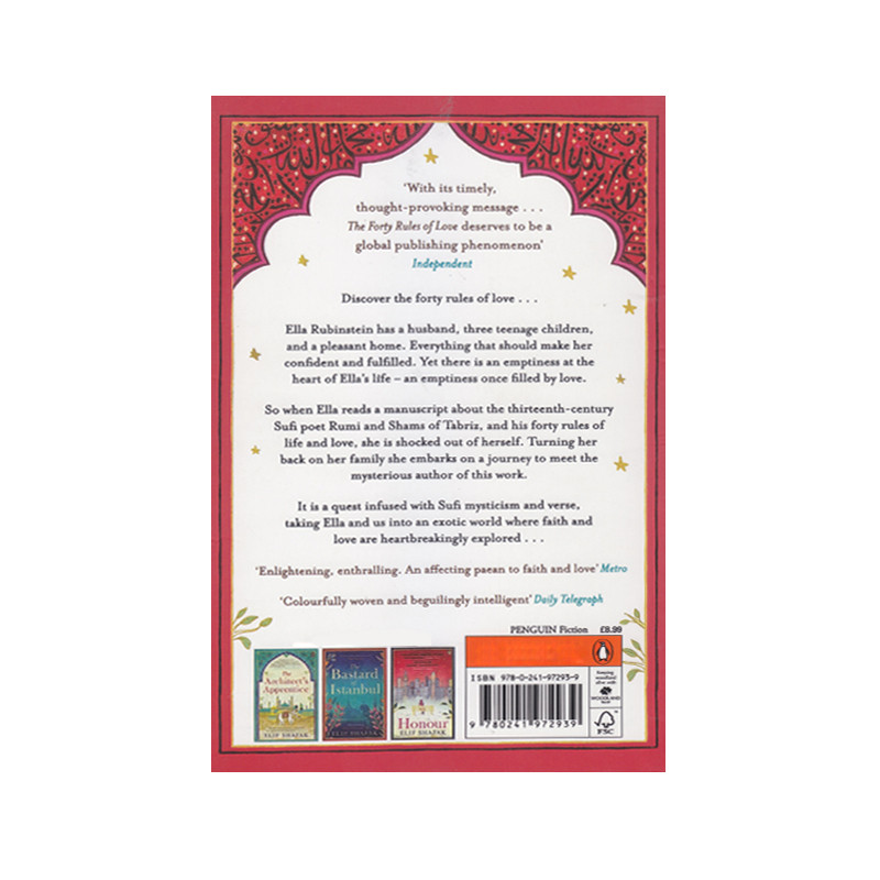 کتاب نام آشنا و پرفروشی که با نام ملت عشق در ایران ترجمه و با استقبال بسیار گسترده ای مواجه شد.در این کتاب جذاب الیف شفق به روایت دو داستان موازی می پردازد، یکی از داستان ها در زمان حال و دیگری در قرن سیزدهم واقع می شود. داستان قرن سیزدهم درباره مولانا و دیدار او با شمس تبریزی و بازگو کننده و شرح هنرمندانه تمام وقایعی است که موجب شد مولانا به عنوان شاگردی در مکتب شمس به یک شاعر بزرگ تبدیل شود و پیام عشق ابدی خود را برای همیشه ماندگار کند.داستان دیگر درباره زنی چهل ساله و غمگین است که به عنوان یک مشاور ادبی مشغول به کار است. اولین رمانی که او قرار است برای چاپ به نشر معرفی کند، رمان Sweet Blasphemy اثر Aziz Zahara است. او خیلی زود با خواندن این کتاب تحت تاثیر روابط و اتفاقات بین مولانا و شمس قرار گرفته و دیدگاه شمس، این درویش وارسته نسبت به زندگی و جهان او را منقلب می کند. نویسنده در این کتاب با باریک بینی و ظرافت تمام، به زندگی این افراد سرک می کشد و زندگی غم انگیز آنان را با هنرمندی تمام به تصویر می کشد...