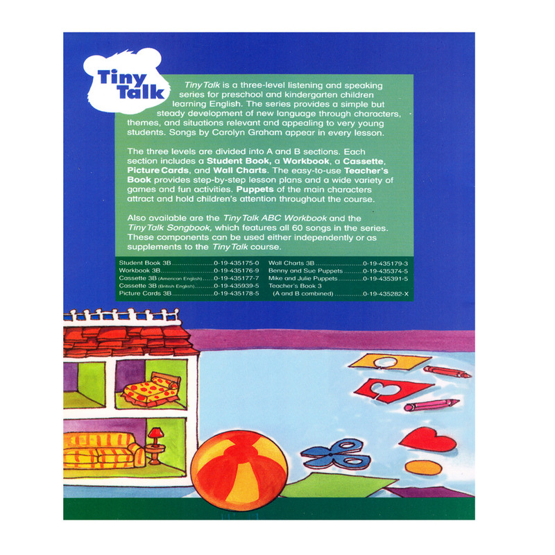 شاید بتوان مجموعه Tiny Talk را یکی از مقدماتی ترین آموزش های زبان انگلیسی دانست. این مجموعه با تصاویر جذاب و به شیوه ساده زبان انگلیسی را به همراه فایل صوتی به زبان آموزان خردسال 3 تا 6 سال آموزش می دهد. این مجوعه در سه سطح تنظیم شده است که هر سطح به دو بخش A و B تقسیم می شود هر کتاب شامل 10 درس است که به موضوعات ساده و روزمره می پردازد. والدین می توانند در کنار دانش آموز به تمرین و کمک به یادگیری...