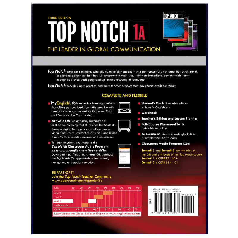 سری کتابهای Top Notch یکی از قویترین دورههای آموزش زبان انگلیسی است که در بسیاری از موسسات و نقاط جهان به عنوان منبع آموزش زبان انگلیسی سایر دوره ها مورد تدریس قرار گرفتهاست. سری Top Notch از انتشارات Pearson Longman است که در هشت جلد تالیف شدهاست. سری کتابهای Top Notch را می توان یکی از کاملترین دورههای آموزشی زبان به شمار آورد که برای هر درس قسمتهای متنوع مکالمه، تمرین، واژگان و گرامر در نظر گرفته است که با هر چهار مهارت آموزش زبان در ارتباط است. هر سطح کتاب به دو بخش A و B تقسیم گردیده و در انتهای هر یک از کتابهای دانش آموز، کتابهای کار ارائه گردیدهاست.