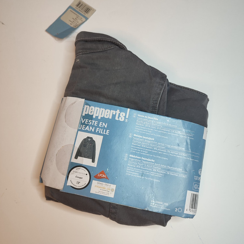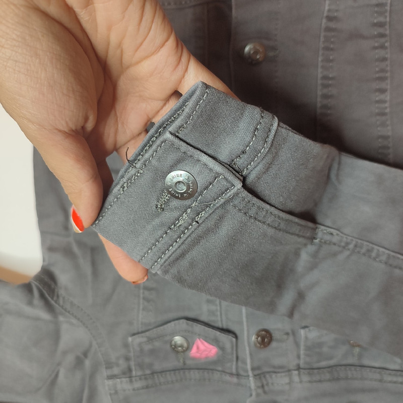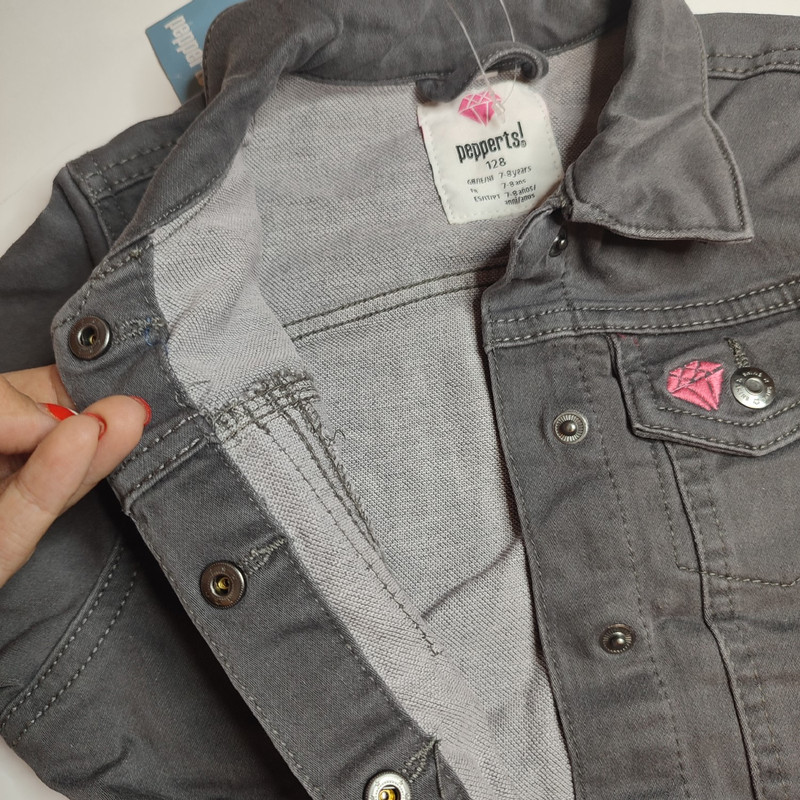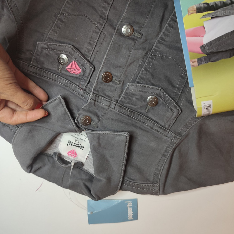 | جزئیات | مناسب 7 تا 8 سال عرض سینه بدون در نظر گرغتن کشسانی 36 قد کل از سرشانه 43 آستین از حلقه 47 از کنار یقه 53 کار جین کشی هست برند اورجینال آلمان دارای دکمه های فلزی مگنتی بسیار محکم |