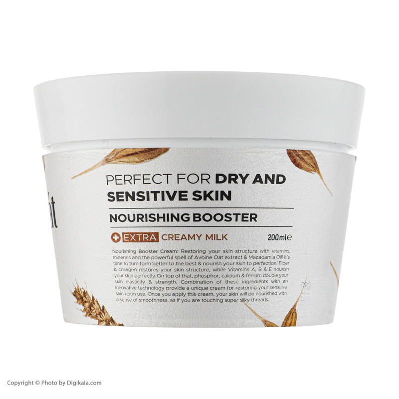 این کرم نوریشینگ بوستر، ترمیم ساختار پوست است و با بهره گیری از قدرت ویتامینه و معدنی جو دوسر و ماکادمیا پوست های خشک را ترمیم می کند. سرشار از عصاره جو دو سر و ماکادمیا است و ویتامین های A , B , E را به پوست می رساند، سرشار از فسفر، کلسیم ، آهن و غنی از و فیبر و کلاژن است که باعث جوانسازی پوست می شود.