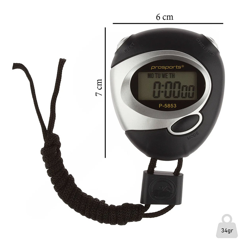اندازه گیری دقیق زمان در هنگام تمرینات و مسابقات ورزشی برای ثبت رکورد و همچنین بهبود عملکرد یکی از دغدغه های مربیان و بازیکنان می باشد.کرنومتر پرو اسپرتز P-5853 یک کرنومتر دقیق با دقت اندازه گیری یک صدم ثانیه می باشد که نیاز شما را در اندازه گیری دقیق زمان بر طرف می کند.بدنه این محصول از جنس پلاستیک مقاوم و نشکن تولید شده است که دوام و استحکام بالایی دارد.صفحه نمایشگر با کیفیت این کرنومتر قابلیت نشان دادن ساعت، دقیقه، ثانیه، و تاریخ روز، ماه را دارد.از دیگر قابلیت های این کالا می توان به وجود آلارم و بند گردنی برای استفاده و حمل راحت تر آن اشاره کرد.ابعاد این محصول 6×7 سانتیمتر و وزن آن 34 گرم می باشد.این کرنومتر بسیار خوش دست می باشد و استفاده از آن راحت می باشد.دقت اندازه گیری بالا به همراه وزن سبک و طراحی زیبا این کرنومتر را در بین مربیان و بازیکنان ورزش محبوب کرده است.