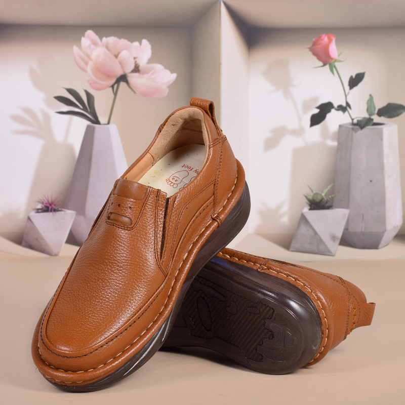 کفی چرم این محصول با بهره گیری از اسفنج پلی اورتان ، نهایت نرمی و راحتی را برای پا به همراه داشته و این محصول را به انتخابی طبی ، مقاوم ، سبک و مناسب برای تمام فصول سال تبدیل کرده است. دوخت این کالا بسیار تمیز بوده و به دلیل نرمی فوق العاده بالا، انتخابی مناسب و فوق العاده راحت برای مصارف روزمره و سر پا ایستادن های طولانی و پیاده روی میباشد.