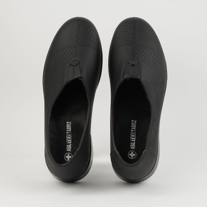 این کفش زنانه دارای طراحی ساده و شیک بوده و برای استفاده روزمره گزینهای ایدهآل محسوب میشود. رویهی آن از جنس چرم مصنوعی با کیفیت بالا ساخته شده که علاوه بر دوام، راحتی قابل توجهی را برای پا فراهم میکند. قسمت جلوی کفش دارای سوراخهای ریز برای تهویه بهتر هوا است که مانع از تعریق بیش از حد پا میشود.