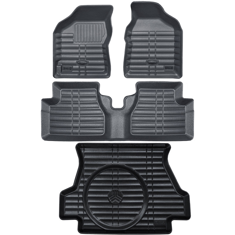 (کفپوش سه بعدی اکونومی ) محصول فوق کفپوش سه بعدی اتاق به همراه کفپوش صندوق خودروی ساینا و ساینا S میباشد و رنگ بندی درج شده در ان مربوط به کفپوش اتاق میباشد و کفپوش صندوق تنها به صورت رنگ مشکی میباشد. در این کفپوش ها از مواد اولیه درجه یک پلی اتیلن برای رویه و نمد برای پشت کار استفاده شده است طراحی این کفپوش به شکلی بوده که به آن ظاهری سهبعدی بخشیده است. کفپوش فوق دارای سه تکهی مجزا بوده که دو تکه برای قسمت جلوی خودرو بوده و قسمت یکتکهی بزرگ برای قرارگرفتن در بخش عقبی خودرو طراحی شده است. این کفپوش بهخوبی کف خودرو را پوشش میدهد و مانع از خوردگی و ساییدگی آن میشود. این محصول به دلیل طراحی مناسبی که دارد، بهراحتی نمیلغزد و بهخوبی در جای خود قرار میگیرد. لطفا کفپوش های فابریک خودرو را خارج کنید تا برای کفپوش سه بعدی مزاحمت ایجاد نشود/