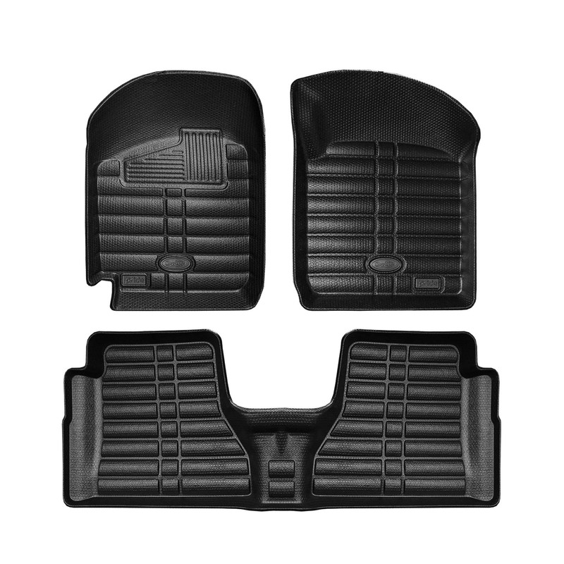 (کفپوش سه بعدی اکونومی ) محصول فوق کفپوش سه بعدی اتاق به همراه کفپوش صندوق خودروی پراید 141 میباشد و رنگ بندی درج شده در ان مربوط به کفپوش اتاق میباشد و کفپوش صندوق تنها به صورت رنگ مشکی میباشد. در این کفپوش ها از مواد اولیه درجه یک پلی اتیلن برای رویه و نمد برای پشت کار استفاده شده است طراحی این کفپوش به شکلی بوده که به آن ظاهری سهبعدی بخشیده است. کفپوش فوق دارای سه تکهی مجزا بوده که دو تکه برای قسمت جلوی خودرو بوده و قسمت یکتکهی بزرگ برای قرارگرفتن در بخش عقبی خودرو طراحی شده است. این کفپوش بهخوبی کف خودرو را پوشش میدهد و مانع از خوردگی و ساییدگی آن میشود. این محصول به دلیل طراحی مناسبی که دارد، بهراحتی نمیلغزد و بهخوبی در جای خود قرار میگیرد. لطفا کفپوش های فابریک خودرو را خارج کنید تا برای کفپوش سه بعدی مزاحمت ایجاد نشود/