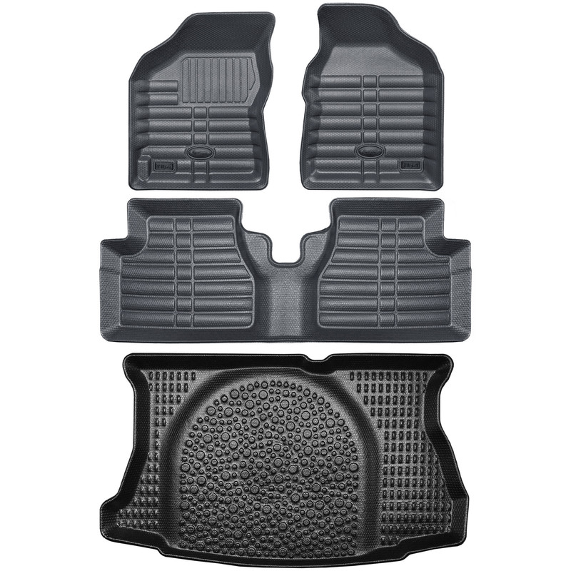 (کفپوش سه بعدی اکونومی ) محصول فوق کفپوش سه بعدی اتاق به همراه کفپوش صندوق خودروی کوییک S میباشد و رنگ بندی درج شده در ان مربوط به کفپوش اتاق میباشد و کفپوش صندوق تنها به صورت رنگ مشکی میباشد. در این کفپوش ها از مواد اولیه درجه یک پلی اتیلن برای رویه و نمد برای پشت کار استفاده شده است طراحی این کفپوش به شکلی بوده که به آن ظاهری سهبعدی بخشیده است. کفپوش فوق دارای سه تکهی مجزا بوده که دو تکه برای قسمت جلوی خودرو بوده و قسمت یکتکهی بزرگ برای قرارگرفتن در بخش عقبی خودرو طراحی شده است. این کفپوش بهخوبی کف خودرو را پوشش میدهد و مانع از خوردگی و ساییدگی آن میشود. این محصول به دلیل طراحی مناسبی که دارد، بهراحتی نمیلغزد و بهخوبی در جای خود قرار میگیرد. لطفا کفپوش های فابریک خودرو را خارج کنید تا برای کفپوش سه بعدی مزاحمت ایجاد نشود/