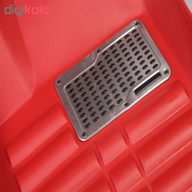 کفپوش فوق برای خودروی رانا است. یکی از نقاط قوت این کفپوش جنس مواد بهکار رفته در ساخت آن است. این کفپوش از چرم ساخته شده و از کیفیت بالایی برخوردار است. طراحی این کفپوش به شکلی بوده که به آن ظاهری سهبعدی بخشیده است. کفپوش فوق دارای سه تکهی مجزا بوده که دو تکه برای قسمت جلوی خودرو بوده و قسمت یکتکهی بزرگ برای قرارگرفتن در بخش عقبی خودرو طراحی شده است. چرم بهکار رفته در این کفپوش با روکشهای چرم خودرو همخوانی بالایی خواهد داشت و موجب زیبایی هرچه بیشتر فضای داخل کابین خواهد شد. این کفپوش به خوبی کف خودرو را پوشش میدهد و مانع از خوردگی و ساییدگی آن میشود. این محصول به دلیل طراحی مناسبی که دارد، بهراحتی نمیلغزد و بهخوبی در جای خود قرار میگیرد