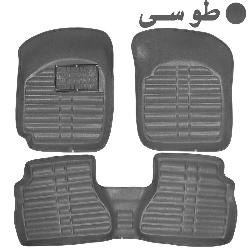 کفپوش خودرو یکی از محصولات پر کاربرد و پر فروش در دسته تجهیزات خودرو می باشد که برای هر خودرویی نیاز است چرا که از کثیف شدن موکت و کف خودرو جلوگیری می کند. طراحی این محصول به گونه ای است که می توان آن را به راحتی جایگذاری و برای نظافت خارج کرد. جنس رویه چرم و زیر کفپوش نمدی است و کاملا دور دوزی شده می باشد.این کفپوش بسیار با دوام بوده و به هیچ عنوان شکننده نیست. و به خاطر نمدی بودن پشت ان به هیچ عنوان در کف خودرو لیز نمی خورد و کاملا ضد لغزش است . این کالا شامل سه تکه کفپوش از قبیل دو عدد کفپوش سمت راننده و شاگرد و یک عدد کفپوش کابین عقب خودرو که به صورت یک تکه می باشد.