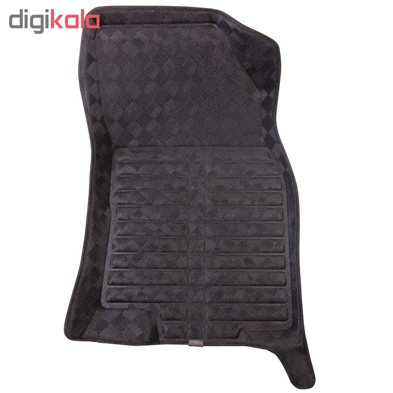 کفپوش فوق مناسب برای خودروهای کولیوس است. بر خلاف کفپوش های 3 بعدی موجود در بازار که قسمت کمتری از کف خودرو را پوشش می دهند در سری جدید کفپوش های 3 بعدی در اکثر مدل های خودروها لبه های کناری ارتقاء یافته اند و کناره های صندلی های جلو را تا عقب پوشش می دهند تا فضای کف خودرو کاملا پوشش داده شود و کناره ها نیز بلندتر شده تا کاملترین پوشش را نسبت به قبل داشته باشد و کلیه سطوحی که پا با آنها تماس دارد را به خوبی پوشش دهد. این کفپوش به صورت اختصاصی جهت استفاده در اتاق داخلی این خودرو طراحی شده است و دارای کیفیت طراحی و تولید بالایی می باشد که سبب می شود به خوبی در اتاق خودرو شما قرار گیرد و به دلیل دقت بالای طراحی به هیچ وجه در کف خودرو جابه جا نشود. جنس سطوح رویه این محصول از چرم ضد سایش و جنس خارجی آن از چسب پارچه ای بوده که باعث می شود کفپوش کاملا ضد آب و ضد بو باشد.استیل موجود در زیر پدال این کفپوش ضد خش بوده و دارای استقامت بالایی می باشد که در طولانی مدت مانع سوراخ شدن کفپوش می شود، همچنین در سطح داخلی این محصول شیار هایی تعبیه شده است که علاوه بر ایجاد نمایی زیبا سبب تجمع مایعات گشته که مانع لغزش پا بر روی کفپوش می شود. این محصول دارای ضخامت 10 میلی متر می باشد و در عین داشتن استحکام بسیار بالا از سبکی و انعطاف پذیری زیادی برخوردار می باشد.