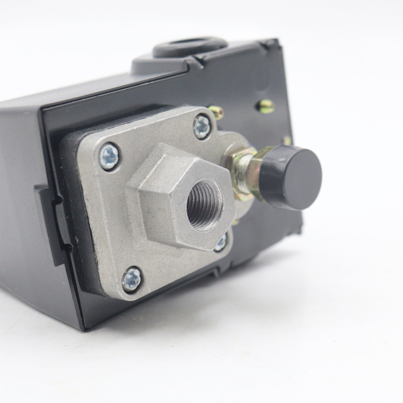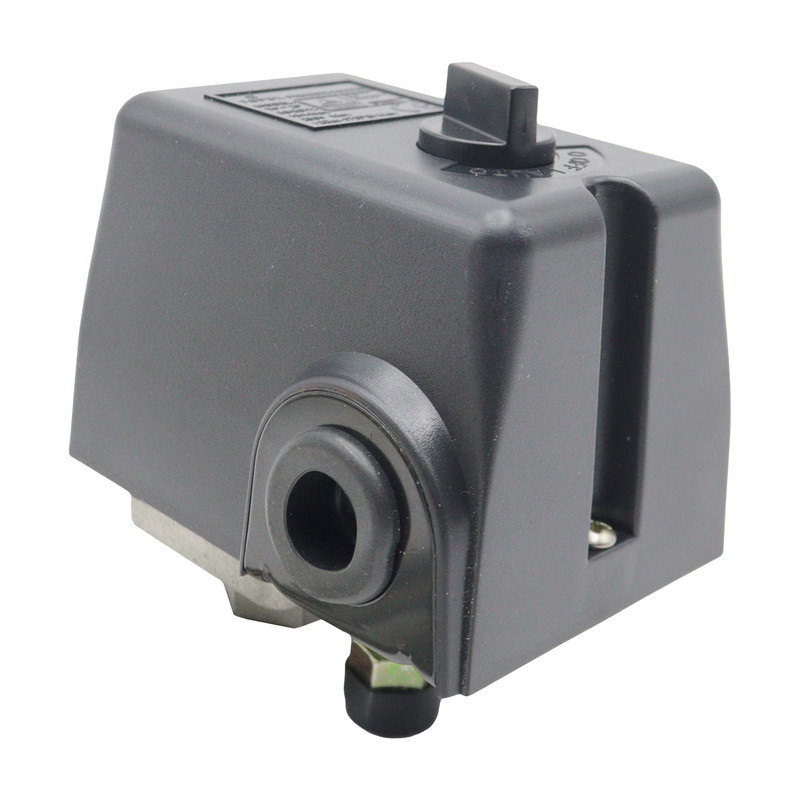 کلید اتوماتیک کمپرسور باد قطعه ایست الکترومکانیکی که با توجه به فشار باد جریان برق الکتروموتور کمپرسور را قطع یا وصل میکند. این محصول قابلیت دیگری نیز دارد که بهره گیری از این قابلیت باعث میشود زمانی که کلید اتوماتیک فرمان قطع میدهد، یک سوپاپ مکانیکی آزاد شده و فشار باد خروجی سیلندر را تخلیه میکند.این محصول تک فاز می