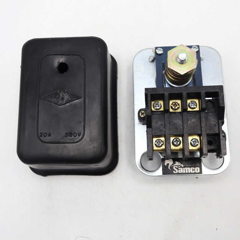 سایر توضیحات- پرشر سوئیچ (کلید پمپ باد) یا به اصطلاح سوئیچ مکانیکی اتوماتیک سامکو - سه فاز ( مناسب برای برق صنعتی کارگاهی ) - یکی از مهم‌ترین قطعات نصب شده بر روی پمپ محسوب شده و کار آن فرمان استارت و قطع کردن پمپ باد می‌باشد.