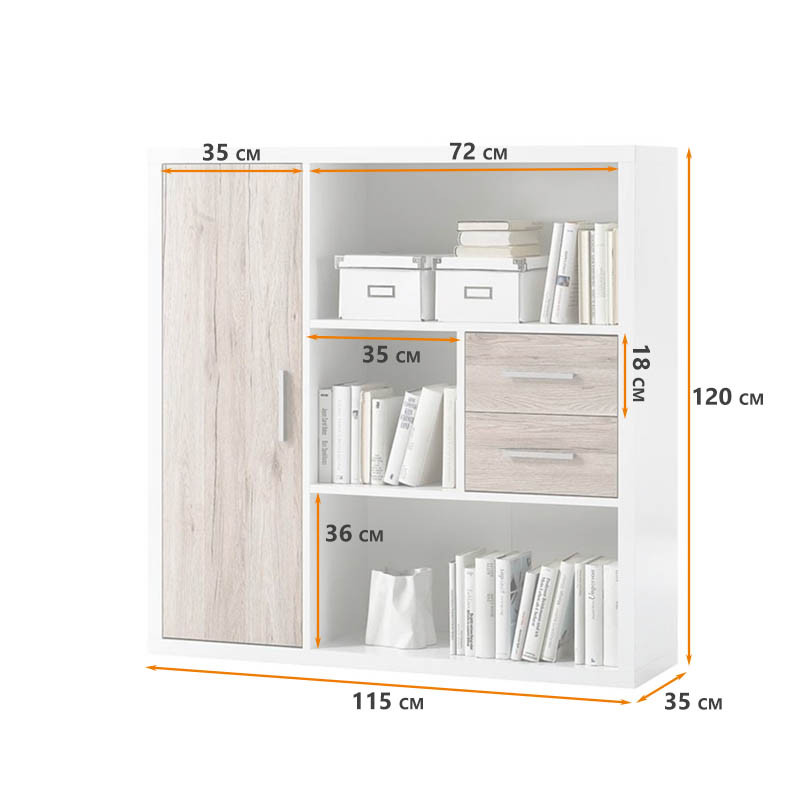 این کتابخانه دارای 3 قفسه، 2 کشو و 1 درب می باشد.جنس محصول ام دی اف می باشد.رنگ بدنه در این محصول به صورت پیش فرض بوده و پس از ثبت سفارش طی تماس تلفنی از طرف مجموعه هیرادکالا شما می توانید رنگ دلخواه خود را انتخاب بفرمایید و کمد اداری هیراد مدل K137 خود را سفارش دهید.ابعاد این محصول به شرح زیر می باشد طول 115 عرض 35 ارتفاع 120