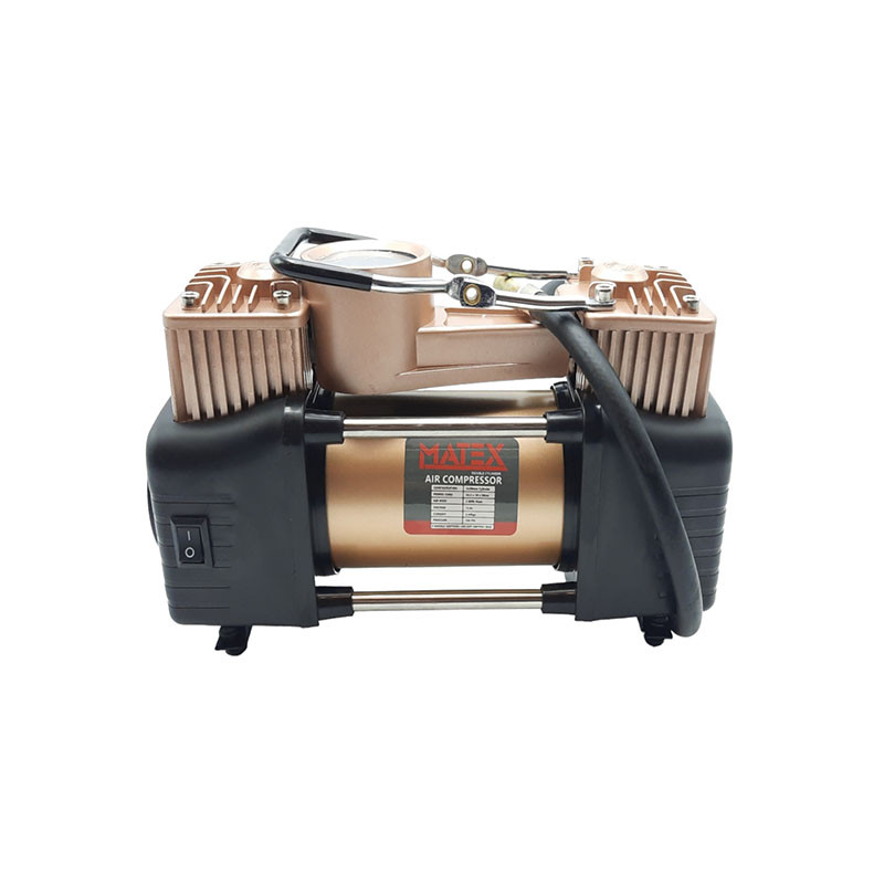 « کمپرسور فندکی ماتکس MATEX یکی از محصولات تولیدی شرکت ماتکس است. این کمپرسور دارای یک خروجی هوا بوده و از آن میتوان برای باد کردن تایر خودرو استفاده کرد. این محصول با برق 12 ولت. خودرو کار میکند و برای این کار به بخش فندکی خودرو متصل میشود.کمبادشدن یا پنچرشدن تایر خودرو یکی از معضلاتی است که ممکن است گریبانگیر هر رانندهای شود. برای مقابله با این مشکل، روشهایی مانند تعویض لاستیک وجود دارد که انجام آن زمانبر و دشوار است و ممکن است فرد در شرایطی نباشد که بتواند چنین کاری انجام دهد. برای مقابله با چنین وضعیتی، می توان از کمپرسورهای فندکی استفاده کرد. کمپرسورهای فندکی خودرو از ابزارهای کارراهاندازی هستند که در برخی مواقع مانند رفتن به سفر و پیکنیک بسیار مفید خواهند بود. این دستگاههای کوچک توان خروجی بالایی ندارند و نمیتوان از آنها توقع داشت که در زمانی کوتاه، هوایی پرفشار با دبی بالا تولید کنند. این دستگاهها با کمک برق خودرو میتوانند در مواقعی که باد لاستیک کم شده یا لاستیک پنچر است، هوای فشرده با دبی کم تولید کنند. تامین نیروی این کمپرسور از طریق فندک ماشین انجام می شود. با این روش، لاستیک هوای موردنیاز را برای ادامهی حرکت خودرو خواهد داشت و در صورت پنچری، فرد میتواند عمل بادکردن لاستیک را چندین بار تا رسیدن به تعمیرگاه انجام دهد. شرکت ماتکس این محصول را با ابعاد و وزن قابلقبولی تولید کرده است و با توجه به نوع طراحیاش، کاربران میتوانند بهراحتی آن را در صندوق عقب خودرو جای دهند.