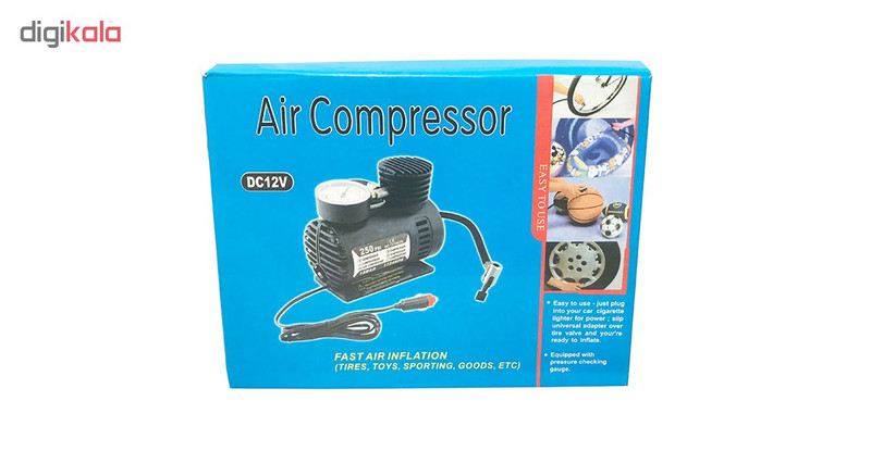 | سایر توضیحات | - قابل استفاده برای باد کردن دوچرخه، موتور، توپ های ورزشی و ... - قابل استفاده با فندک اتومبیل - دارای سیم بلند جهت جا به جایی به خارج اتومبیل - دارای سه نازل باد |
