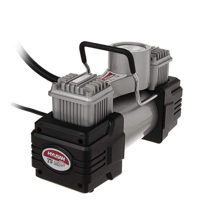 کمپرسور هوا فندکی هیوسان کد S-2012 با ابعادی بسیار مناسب و قابل حمل که برای استفاده در خودرو مناسب است. به کمک این کمپرسور میتوان در هر کجا که مشاهده کردید باد لاستیک خودرویتان کم شده تنها با استفاده از انرژی الکتریکی خودرو خود، لاستیک را باد کرد. این کمپرسور با توجه بهاندازهی کوچکی که دارد و وزن کم بهراحتی در گوشهای از صندوقعقب خودروی شما جای میگیرد و این امکان را به شما میدهد تا در مواقع استفاده بهراحتی و بدون هیچ سختی بتوان از آن استفاده کرد. ولتاژ ورودی این محصول 12 ولت است و از این لحاظ کاملاً متناسب با برق خروجی باتری خودرو طراحیشده است.