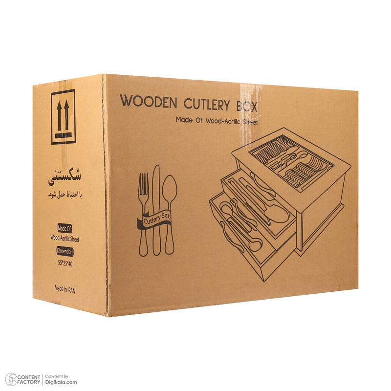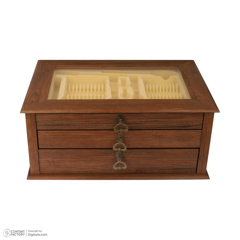 | سایر توضیحات | جنس بدنه چوب دارای سه کشو مناسب برای سرویس های 119 تا 158 پارچه. |