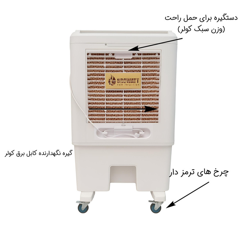 امروزه با گرم تر شدن هوا که هر ساله دمای هوا نسبت به سال های قبل به دلایل مختلفی افزایش می یابد، نیاز به استفاده برای کولر برای انسان ها یکی از واجبات در طول سالیان سال بوده است. کولر های گازی به دلیل گران بودن نسبت به کولرهای آبی خواهان کمتری دارند. البته نوع کولر های آبی نسبت به کولر های گازی خیلی زیاد تر است. کولرهای آبی پرتابل که با نام اختصاری پرتابل بیشتر شناخته می شوند سهم بیشتری از بازار هدف نه تنها در ایران بلکه دنیا را فرا گرفته اند. کولر پرتابل سلولوزی سایز متوسط بروات مدل P-BR 28000 یکی از محصولات جدید سرمایشی شرکت بروات است که نه تنها در ایران بلکه در کشورهای حوزه خلیج فارس نیز به دلیل کیفیت ساخت در بدنه و سلولوز موجود در آن ها پر فروش هستند. این کولر با طراحی خاص و منحصر بفرد خود با توربین بزرگ و قدرت پرتاب بالا نیازهای یک متراژ 50 تا 70 متری را جواب می دهد. این کولر مجهز به نمایشگر دیجیتال و کنترل از راه دور دارد است که این امکان را به شما میدهد تا سرعت باد، نوع باد، فعال کردن پره های عمودی، ... را کنترل کنید. این کولر از مخزن 40 لیتری خود بهره می برد به طوری که هوشمند بوده و جریان آب را کنترل می کند. شما به صورت دستی نیز می توانید مخزن 40 لیتری را پر کنید. هوادهی 1500 متر مکعب در ساعت این کولر خود را از بقیه رقبا جدا کرده و بهترین هوادهی و بازخود را به شما می دهد. در بالای این کولر محفظه جا یخی وجود دارد که 2 عدد جا یخی در بالای کولر قرار میگیرد. کاربرد این جا یخی به این صورت است که اگر خواستید برودت کولر را بیشتر کنید باید این جا یخی ها را پر از آب کرده و در یخچال فریزر گذاشته تا یخ بزند. بعد از یخ زدن در بالای کولر بگذارید. موقعی که آب از مخزن به سمت بالا بیاید، آب از روی جا یخی ها رد شده و برودت هوا را بیشتر خواهد کرد. این محصول موقع کار کم صدا بوده و لغزشی ایجاد نمی کند. 4 چرخ زیر کولر نیز این امکان را به شما می دهد تا به راحتی این کولر را حمل کنید. پنل تنظمات و کنترل از راه کولر از دیگر ویژگی های این کولر پرتابل است. در ضمن برای جلوگیری از ضربه یا دست نزدن کودکان به تنظیمات کولر یک کاور باز بست شو نیز جلوی پنل قرار گرفته است. ویژگی بارز این محصول کیفیت بالای این کولر است که جایگزین توجیه پذیری نسبت به کولر های آبی فلزی و کولر های گازی دارد.