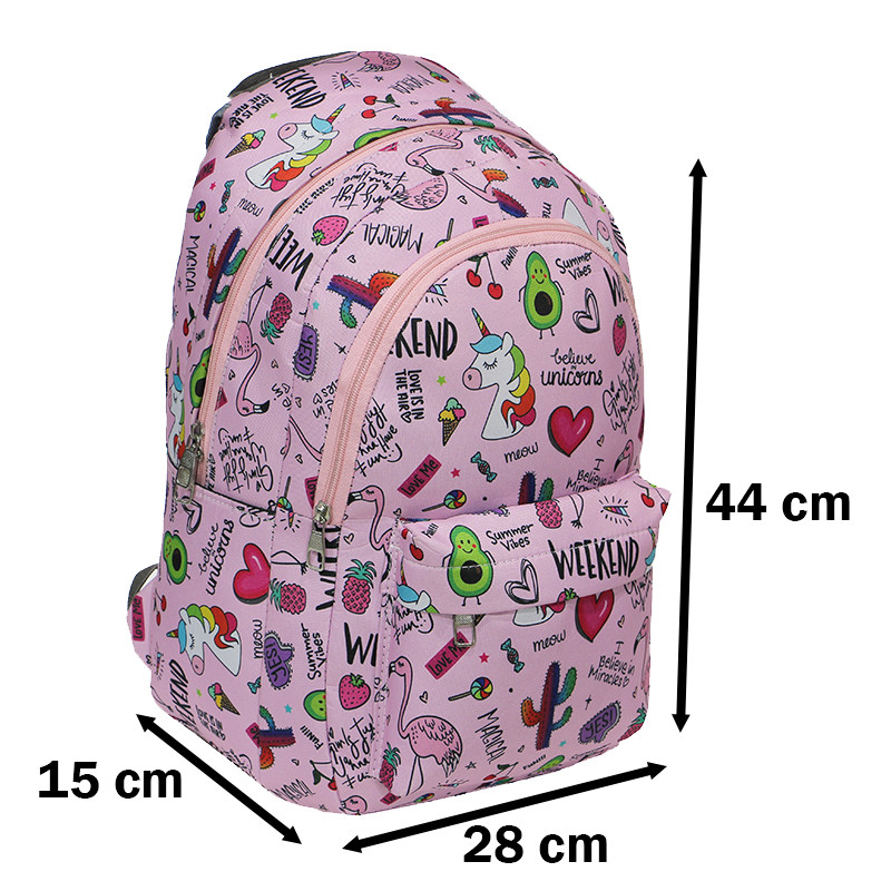 کوله پشتی دخترانه مدل NHH-150003 باتوجه به زیبایی، کیفیت و وزن سبک خود گزینهی خوبی برای استفادهی شما خواهد بود. جنس بدنه از پارچه پلی استر مرغوب است که مقاومت خوبی دربرابر پارگی و پوسیدگی دارد و همچنین ضدآب است. همین ویژگی پارچه باعث میشود که کولهپشتی از دوام و عمر خوبی برخوردار باشد و با خیالی راحت بتوانید برای مدتها از آن استفاده کنید. ابعاد و اندازهی درنظرگرفتهشده برای این محصول نیز به حدی بوده که مناسب شما برای قرار دادن وسایل روزمره ، کتاب و .... باشد. برای حمل این کوله یک دسته در قسمت بالا و دو بند در پشت قرار دارند. بندهای دوشی دارای قابلیت تنظیم هستند که باعث راحتی بیشتر در زمان حمل کولهپشتی میشوند. این محصول دارای دو جیب در طرفین کولهپشتی برای قرار دادن آب ونوشیدنی است. این کوله دارای4 جیب خارجی است. اگر به دنبال کوله پشتی با طراحی منحصر به فرد و وزن سبک هستید در انتخاب مدل NHH-150003 شک نکنید.