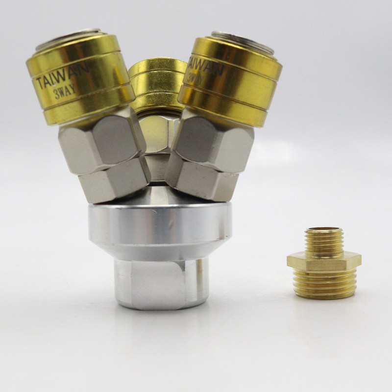 کوپلینگ ابزاری جهت اتصال ادوات بادی به کمپرسور باد جهت انتقال هوای فشرده به ابزار آلات بادی استفاده می‌گردد.به دلیل فشار بالای باد، امکان اتصال به روش‌های سنتی و ساده وجود ندارد و ادوات بادی باید توسط اتصالات مستحکم به کمپرسور باد متصل شوند تا فشار باد نتواند باعث جدا شدن ادوات بادی از کمپرسور شود.این اتصالات باد باید توسط کوپلینک و دنباله باد انجام شود این کوپلینگ سه راهی قابلیت اتصال ادوات بادی از قبیل پیستوله، میخکوب یا منگنه کوب‌های بادی، بادپاش، درجه باد و … را دارد.