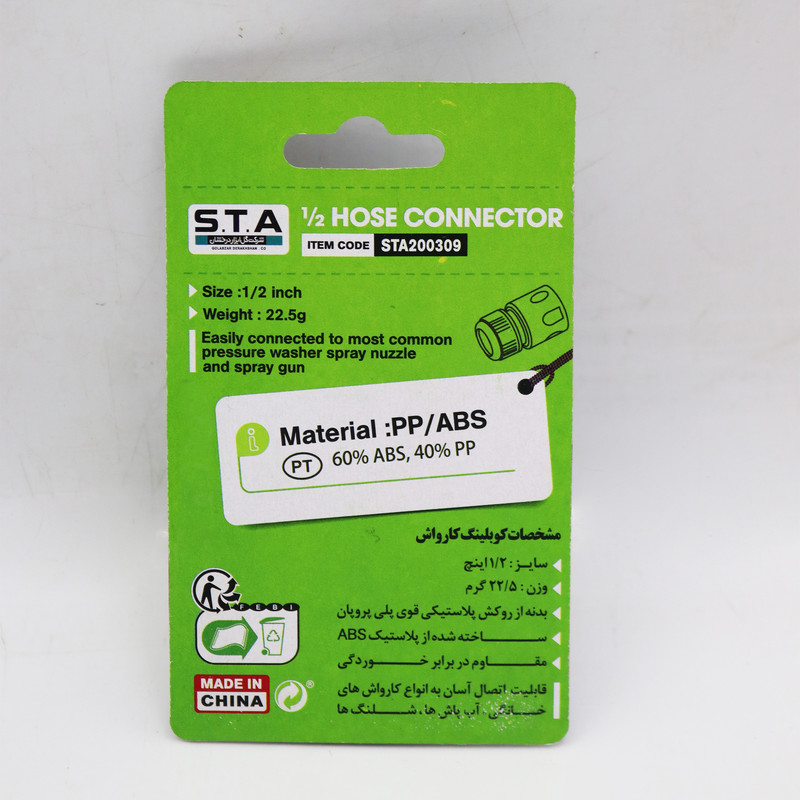 | سایر توضیحات | - کوپلینگ کارواش اس تی ای - سایز 1/2 اینچ - وزن 22.5 گرم - بدنه از روکش پلاستیکی قوی پلی پروپان - ساخته شده از پلاستیک ABS - قابلیت اتصال آسان به انواع کارواش های خانگی - آب پاش ها - شلتگ ها - کیفیت بالا - مقاوم در برابر خوردگی |