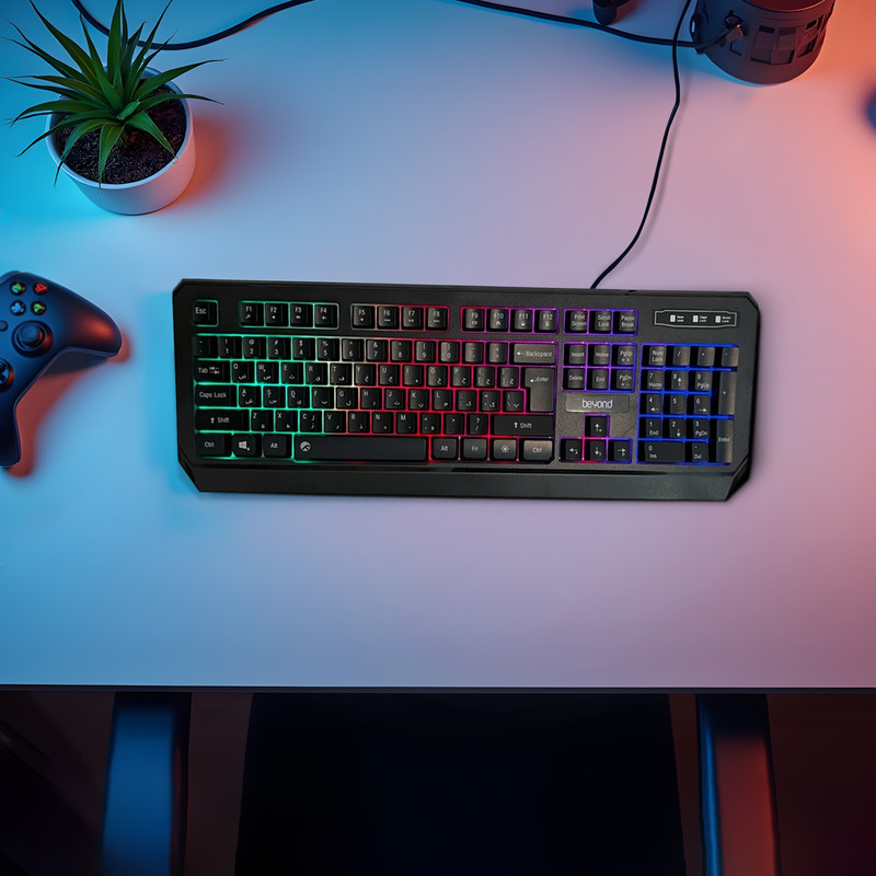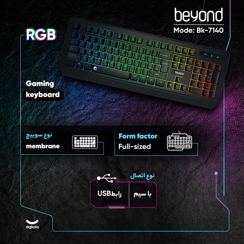 کیبورد بیاند مدل Bk-7140، سوئیچ ممبران، Full-size، نورپردازی LED RGB
