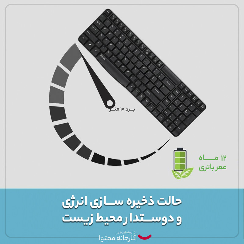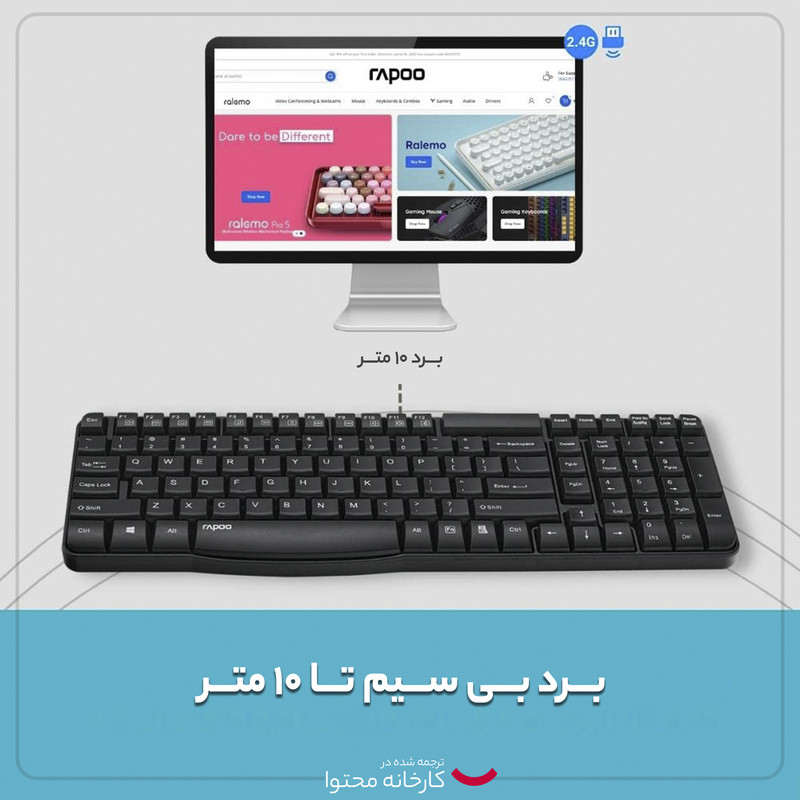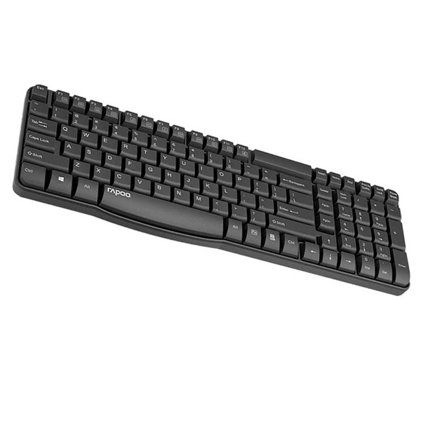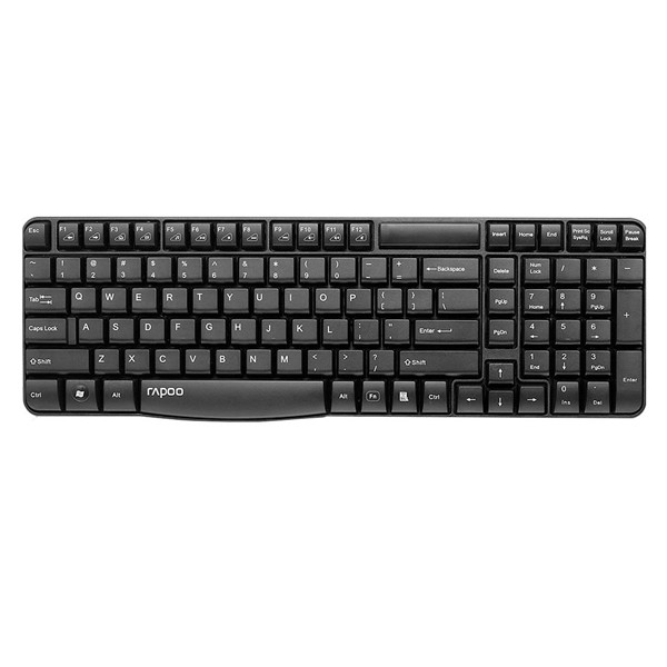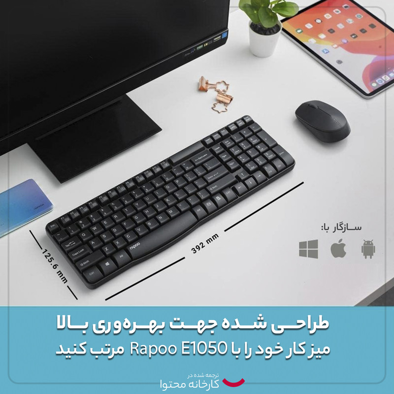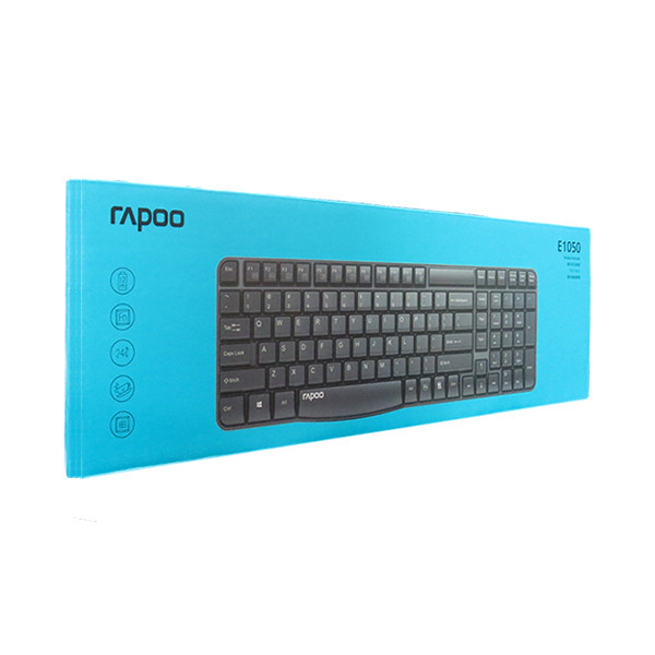 کیبورد بی سیم رپو مدل E1050 یک کیبورد با طراحی ارگونومیک است که توسط کمپانی «رپو» طراحی و تولید شده است. این کیبورد با کلیدهای میانبر خود، میتواند سرعتعمل کارها را برای شما افزایش دهد. همچنین به علت ارگونومیک بودن، در استفاده های طولانی مدت دستان شما کمتر خسته می شوند و هنگام کارکردن حس خوبی به شما می دهد. کیبورد بی سیم رپو مدل Rapoo E1050 Wireless Keyboard درکل یک کیبورد خوش ساخت با طراحی ارگونومیک و کلیدهای میانبر کارآمد است که به شما در انجام امور کمک شایانی می کنند. شرکت رپو سال ها در طراحی و تولید محصولات کامپیوتری و دیجیتالی فعالیت دارد. کیفیت و قیمت مناسب محصولات این شرکت کاربران زیادی را مجاب به استفاده از آنها کرده است. کیبورد بدون سیم رپو E1050 میتواند گزینه بسیار مناسبی برای بسیاری از کاربران باشند که می خواهند از کیبورد وایرلس تنها و بدون ماوس استفاده کنند. یکی از مزیت ها و ویژگی های کلیدی این کیبورد ساختار یک پارچه و بدون درز آن است که باعث ایجاد مقاومت بالای آن در برابر نفوذ مایعات و رطوبت می شود. همچنین کلیدهای Fn در بالای کیبورد اجازه دستری سریع تر و کنترل بهتر و راحت تر مالتی مدیا، صفحه اصلی، تنظیم صدا، ایمیل را به شما می دهد.با کیبورد بی سیم رپو مدل Rapoo E1050 Wireless Keyboard دیگر نگران ریختن آب و دیگر مایعات روی صفحه کلیدتان نباشید، زیرا این کیبورد در مقابل نفوذ مایعات مقاوم است. صفحه کلید E1050 رپو توسط دانگل USB و کاملا وایرلس به سیستم شما می شود و فرکانسی برابر با 2.4 گیگاهرتز دارد. ابعاد حدودی این کیبورد 28 × 125 × 392 میلی متر می باشد.